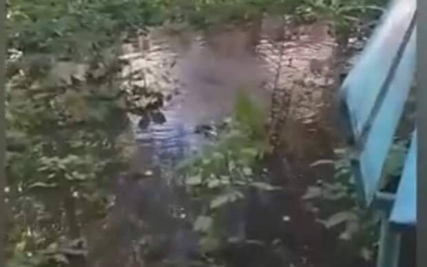 В результате происшествия залило двор. По словам очевидцев, уже несколько часов стоит неприятный запах.