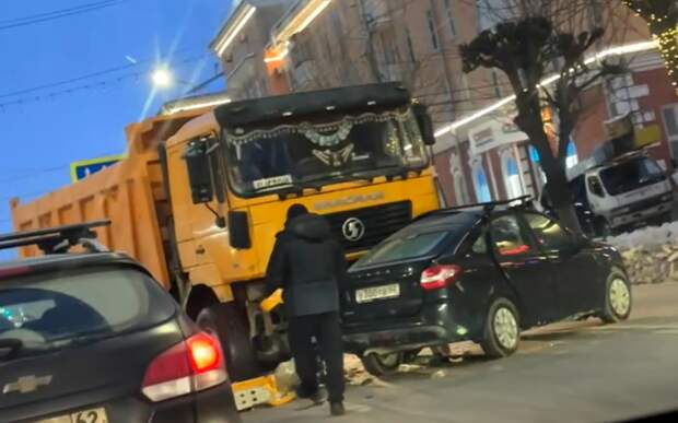 Авария случилась в понедельник, 22 января. Судя по кадрам, грузовик въехал в бок «Лады». В комментариях один из пользователей, который, вероятно, видел ДТП, сообщил, что в легковушке зажало человека. На месте работали сотрудники МЧС.