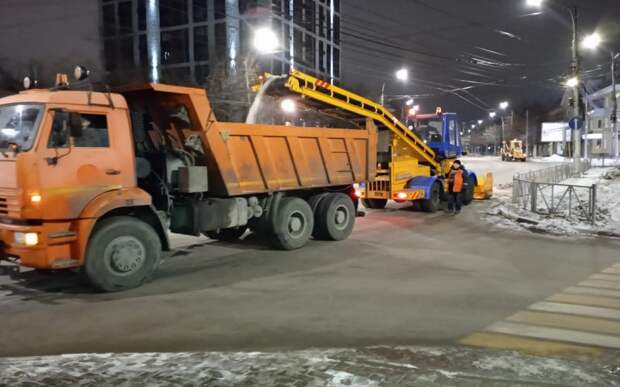 Идет вывоз снега с улицы Дзержинского.