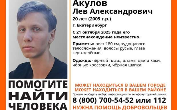 Волонтеры "ЛизаАлерт" указали, что пропавший может находиться в Рязани или окрестностях. В ориентировке даны приметы 20-летнего Льва Акулова - у него русые волосы и серо-зеленые глаза. Рост молодого человека - 180 сантиметров, он худощав.