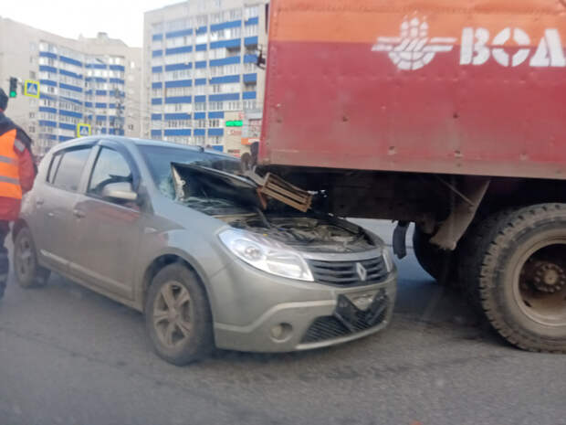 На кадрах можно заметить, что легковой автомобиль залетел капотом под автомобиль «Водоканала».