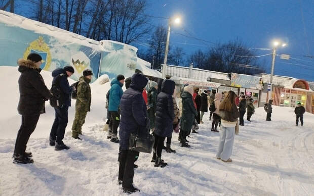 Фото с большим количеством людей было сделано утром в пятницу, 15 декабря, на остановке «Дягилевский городок».
