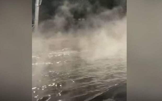 Инцидент произошёл в ночь на вторник, 5 июля. На кадрах можно заметить, что в результате прорыва проезжую часть затопило кипятком.