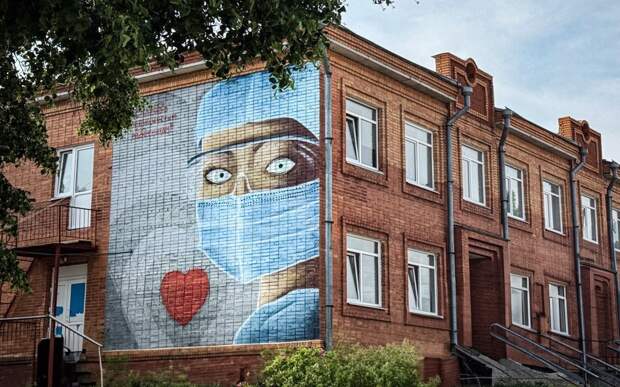 По словам авторов поста, мурал на стене Спасской районной больницы был создан ко Дню медицинского работника и являет собой символ уважения к труду врачей.