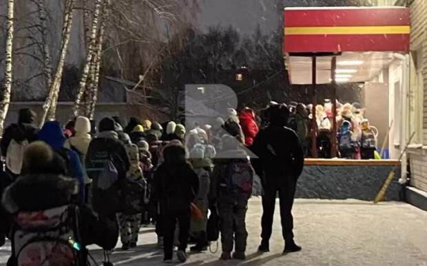 Отмечается, что школьникам пришлось стоять в очереди перед школой в мороз.