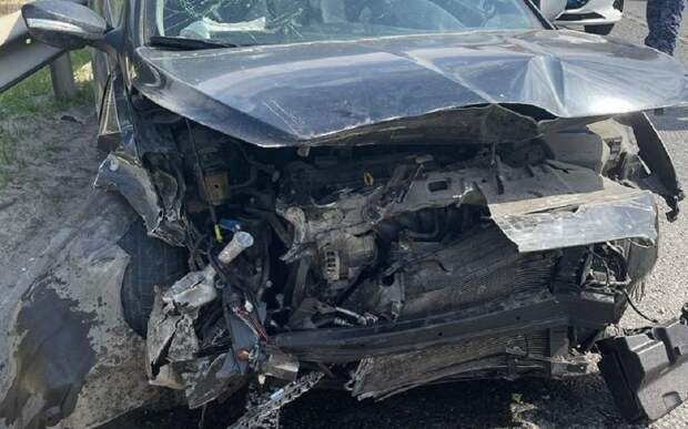 Авария произошла в 13:05. Водитель Hyundai Solaris потерял управление и влетел в дорожное ограждение. Передняя часть машины сильно повреждена. Водитель получил травмы.