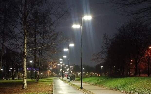Освещению парка было уделено особое внимание: установили 42 фонаря и 13 ландшафтных светильников.