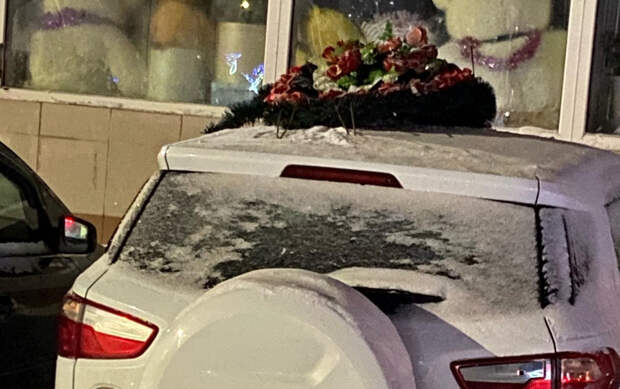 Машина была припаркована у дома №18. На кадрах видно, что на крыше лежит венок.