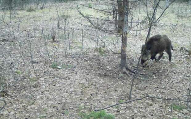 Фотоловушка сработала 14 апреля. На ней запечатлён кабанёнок, рождённый в 2022 году.