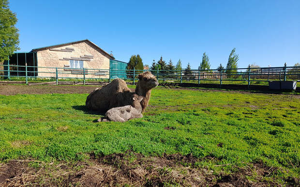 Малыш пока что не отходит от мамы. Люди в комментариях пожелали здоровья верблюжьему семейству.