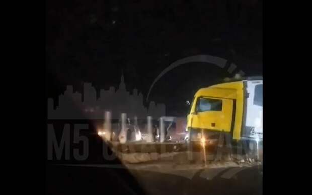 Авария произошла в среду, 20 декабря, в районе деревни Собчаково. Судя по кадрам, большегруз протаранил отбойник и частично вылетел на встречную.