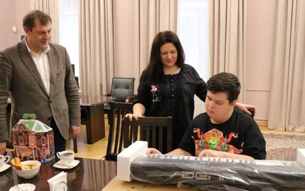 Глава мэрии Рязани снял с ёлки желание Владислава. Артемов подарил синтезатор и сладкий подарок юному рязанцу.