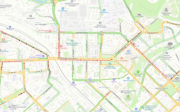 Дорожный затор образовался на Первомайском проспекте, также стоит улица Вокзальная. Официальная информация уточняется.