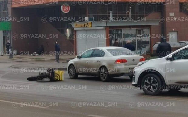 Мотоцикл курьера оказался на проезжей части. Информации о состоянии пострадавшего и подробностях столкновения пока нет — официальных данных от экстренных служб не поступало.