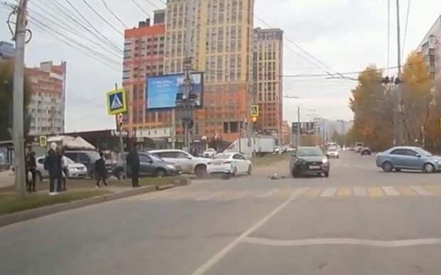 Судя по кадрам, один автомобиль при повороте налево не уступил дорогу и врезался во встречную машину. На видео можно заметить, что от удара один отлетел в стоящий на светофоре автомобиль.