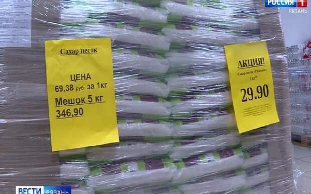 По телевизору показали рекламу: сахар продаётся по 29,90 рублей за 1кг. После этого толпа посетителей начала осаждать местные магазины. Уже на месте оказалось, что для работы акции нужно набрать товаров на тысячу рублей. Об этом было сказано мелким шрифтом в рекламном ролике.