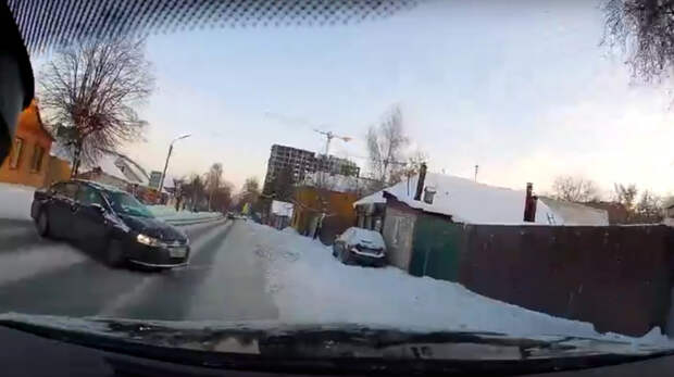 На кадрах видно, что встречный автомобиль «Фольксваген» резко занесло, и он стал двигаться прямо в сторону машины автора ролика, который ехал по соседней полосе. Мужчина среагировал и ушёл на обочину, избежав ДТП.