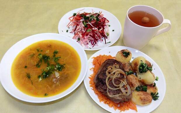 Для осуждённых приготовили зразы, биточки, тефтели с гарниром из картофеля, а также овощные салаты. В новогоднее меню вошло жаркое по-домашнему с мясом говядины (свинины) или плов и салат.