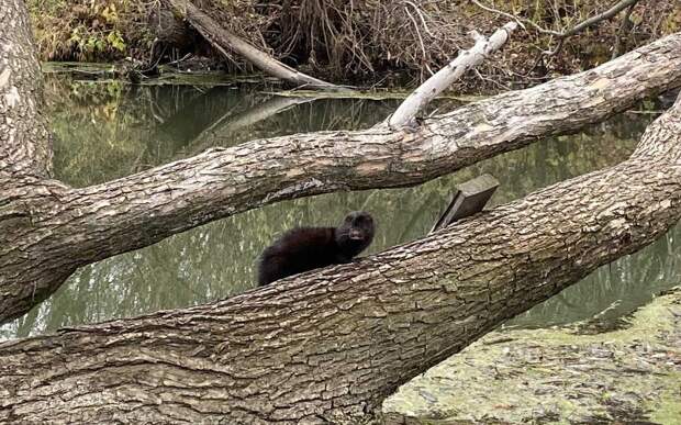 «Они шустрые животные и при любой опасности прячутся. Но в этот раз повезло, у меня была с собой камера и мой пёс Блэк смог загнать зверька на упавшее в воду дерево», – рассказала местная жительница.