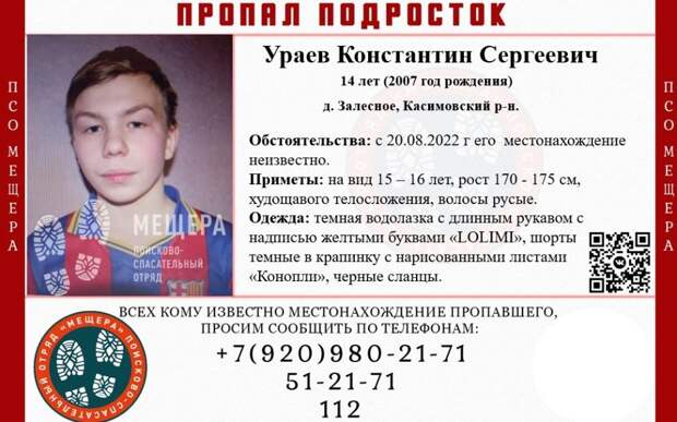 Волонтёры поисково-спасательного отряда «Мещёра» сообщили, что 14-летний мальчик и 16-летняя девочка пропали 20 августа из Деревни Залесное.