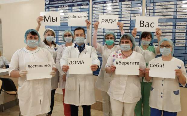 Они напомнили пациентам, что важно оставаться дома, тем самым поддержав коллег по всему миру. Главврач больницы Андрей Мартынов добавил, что ещё один призыв – «берегите себя».