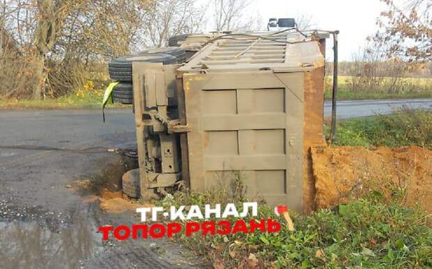 ЧП случилось на повороте на село Вышгород. На приложенной фотографии видно, что самосвал перевозил песок и значительная часть груза после опрокидывания оказалась на обочине.