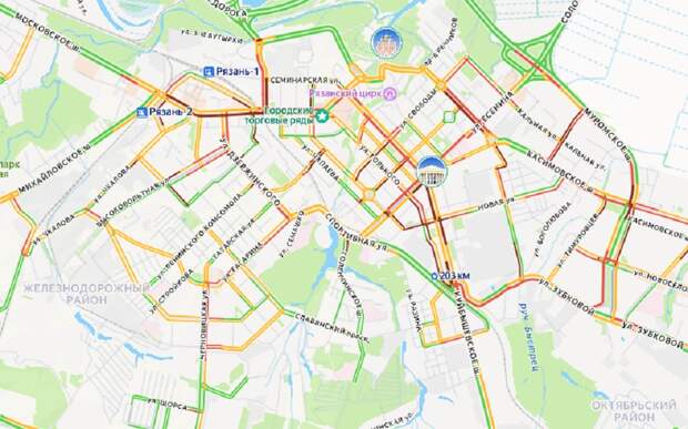 Как показывает сервис Яндекс.пробки, практически нет движения на улицах Циолковского, Горького, Введенской, на перекрестке Грибоедова и Есенина. Сильные затруднения – на Дзержинского, Высоковольной, Вокзальной, Первомайском проспекте.