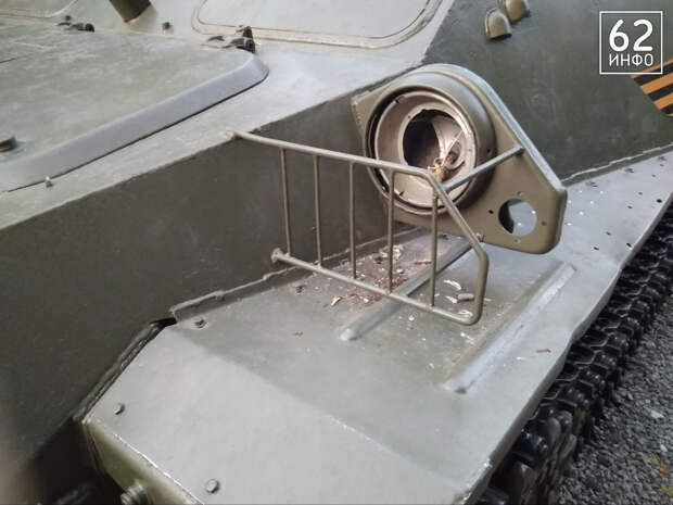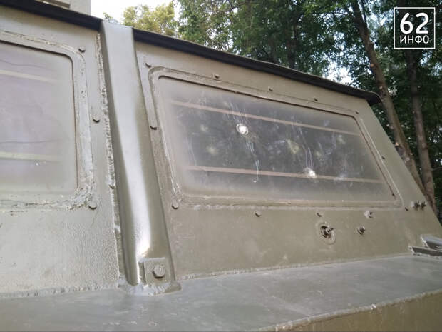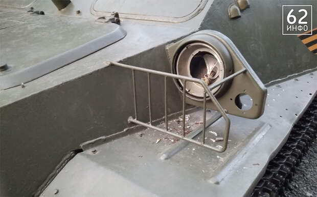Серьёзные повреждения также получил ЗРК «Стрела-10». Неизвестные разбили фару и попытались выбить стекло оператора. На нём остались трещины и след от ботинка.