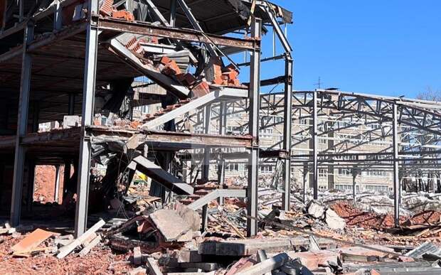 На кадрах видно, что недостроенный рынок уже начали сносить, в том числе и «замок».