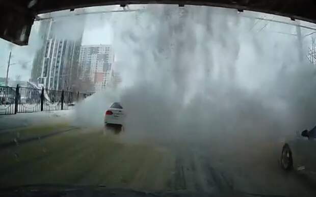 «Это было круто…» - комментирует водитель. Судя по кадрам, с пешеходного перехода на машины свалился снег. Всё произошло утром в пятницу, 15 декабря.