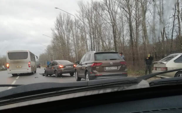 Судя по кадрам, одна из машин перегородила полосу для движения. Остальные участники вынуждены объезжать место ДТП, выезжая на встречную.