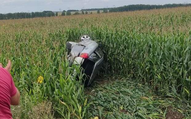 Предположительно, водительница не справилась с управлением, машины вылетела с проезжей части на кукурузное поле и несколько раз перевернулась.