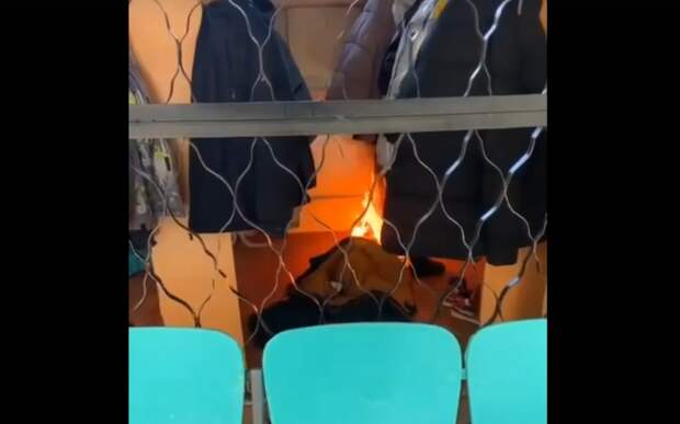 Видео прислали из школы №4. Судя по кадрам, огонь пылал в раздевалке учебного заведения.