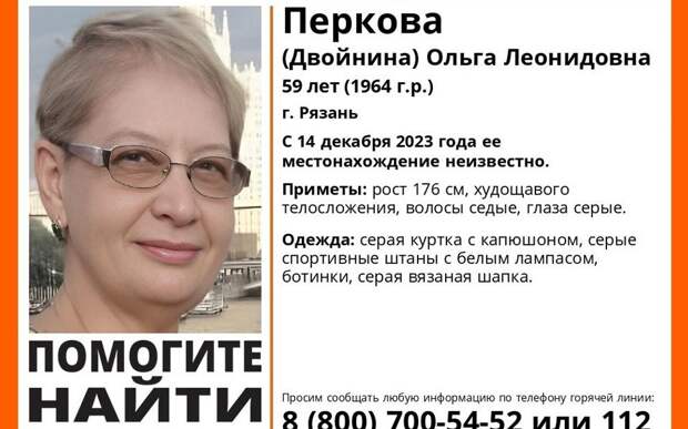 Местонахождение рязанки неизвестно с 14 декабря. Приметы: рост 176 сантиметров, худощавого телосложения, серые глава, седые волосы.