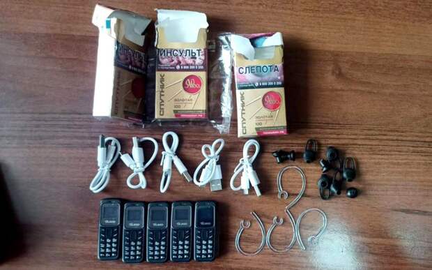 Установлено, что в бардачке грузовика хранились «особенные» пачки сигарет. Вместо непосредственно сигарет они были начинены телефонами и USB-кабелями. Всего изъяли по 5 телефонов и проводов к ним.