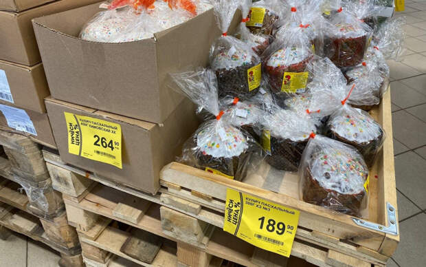 Обойдя несколько супермаркетов, мы сочли самым широким ассортимент в «Перекрёстке», там хороший выбор куличей, на втором месте – «Магнит» и «Пятёрочка», а вот в «Дикси», к сожалению, практически ничего не осталось.