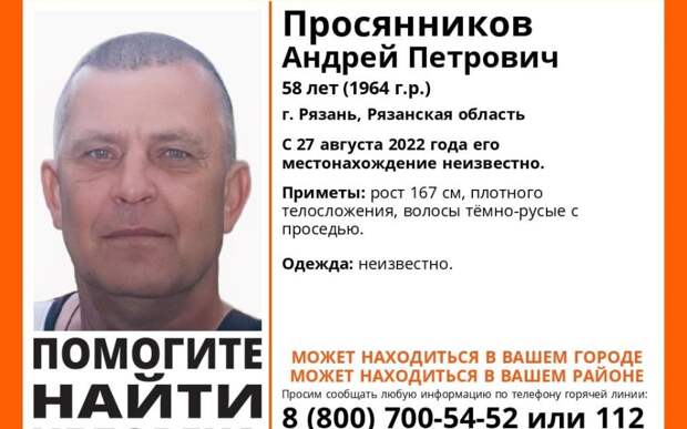 Приметы рязанца: рост 167 сантиметров, плотного телосложения, тёмно-русые волосы с проседью. Во что был одет неизвестно.
