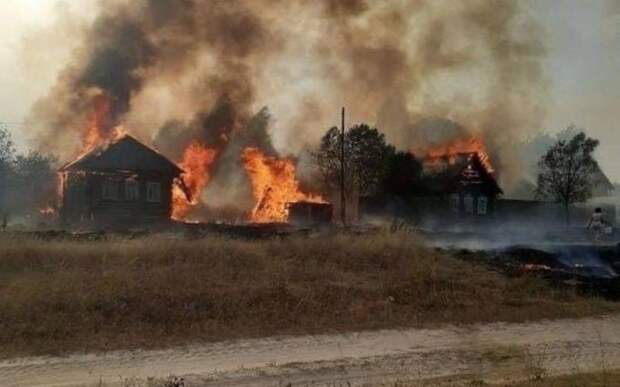 Местные жители рассказали, что загорелась сухая трава от искрившихся проводов, которые повредил сильный ветер.