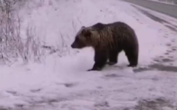 Сначала, увидев силуэт животного, мужчины подумали, что это собака. Когда зверь начал приближаться, стало ясно, что это медведь. Он шёл вдоль трассы.