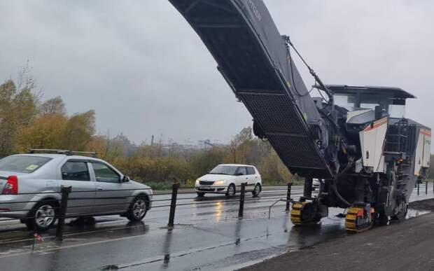 На объекте идут работы по фрезерованию строго асфальтобетонного покрытия, уширению дороги и устройству ливневой канализации.