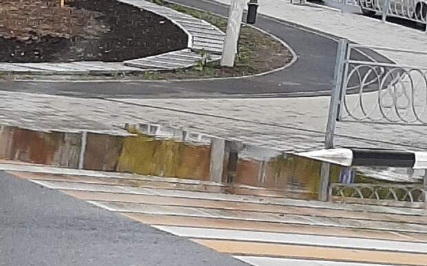 «Кто принимал работу у дорожников? Как людям переходить дорогу? Лужа огромная, на улице сухо. Брак в работе», – написала пользовательница.