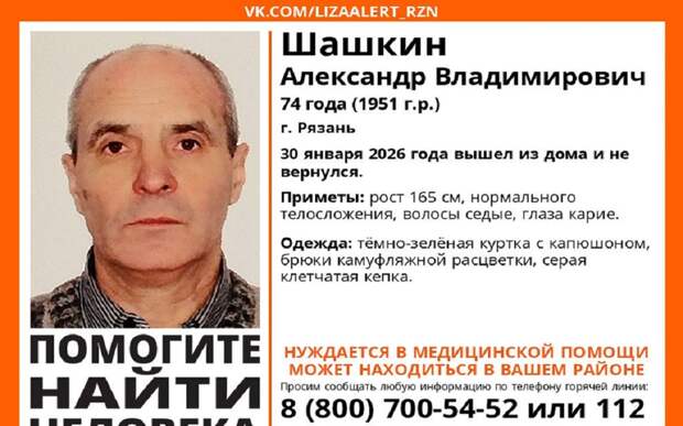 В Рязани пропал Александр Шашкин. Сегодня, 30 января, он вышел из дома и не вернулся.