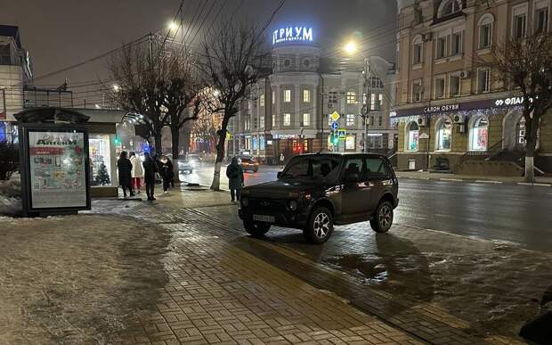 Нарушителя сфотографировали вечером в пятницу, 22 декабря. На кадрах видно, как автомобиль стоит на пешеходной дорожке возле остановки у ТЦ «Атрон».
