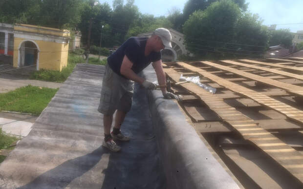 Они накрыли строение линолеумом и банерной тканью за несколько часов.