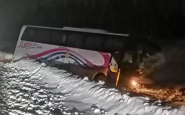 Сообщается, что никто не пострадал. Пассажиров автобуса разместили в местной гостинице.