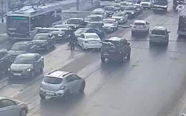 Авария произошла около 12:15. Три столкнулись «гармошкой». Движение на месте происшествия сильно затруднено.