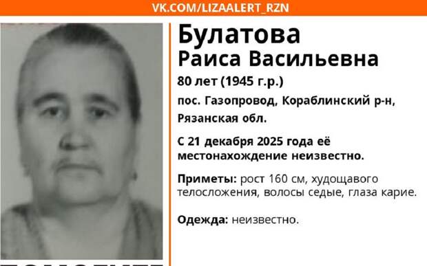 Ориентировку на розыск опубликовал ПСО «ЛизаАлерт – Рязань».