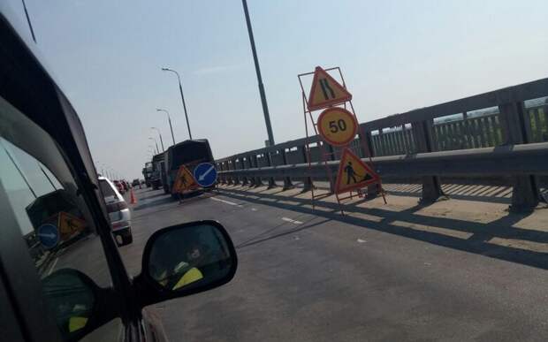 По информации пользователей, заторы связаны с перекрытием одной из полос.
