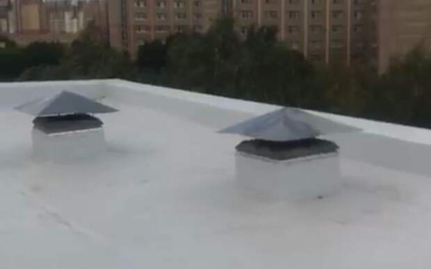 Подрядчик демонтировал повреждённые участки кровли, сделал новое основание, уложил покрытие из ПВХ-мембраны и установил водоотливы по парапету.