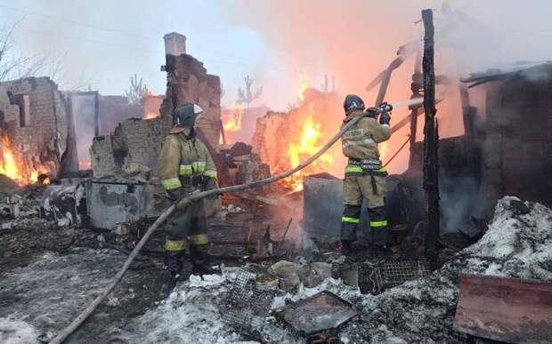 Пожар потушили в 16:00.По предварительной информации, пожар произошёл из-за того, что в одном из помещений перетопили печку.